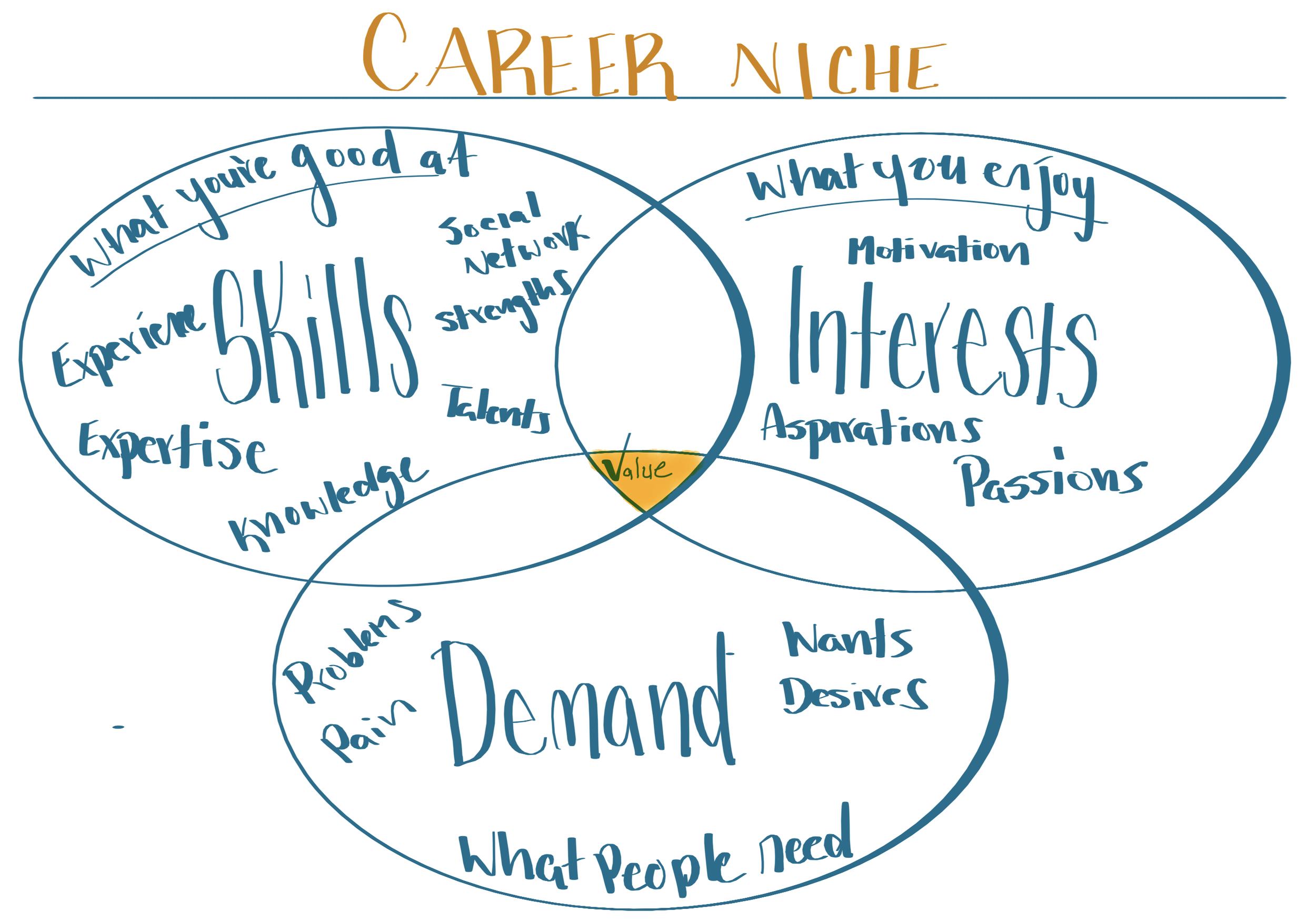 A niche is your unique position in the market—the intersection of what you’re good at, what you enjoy, and what people are willing to pay you for. It’s the sweet spot where you can thrive professionally.